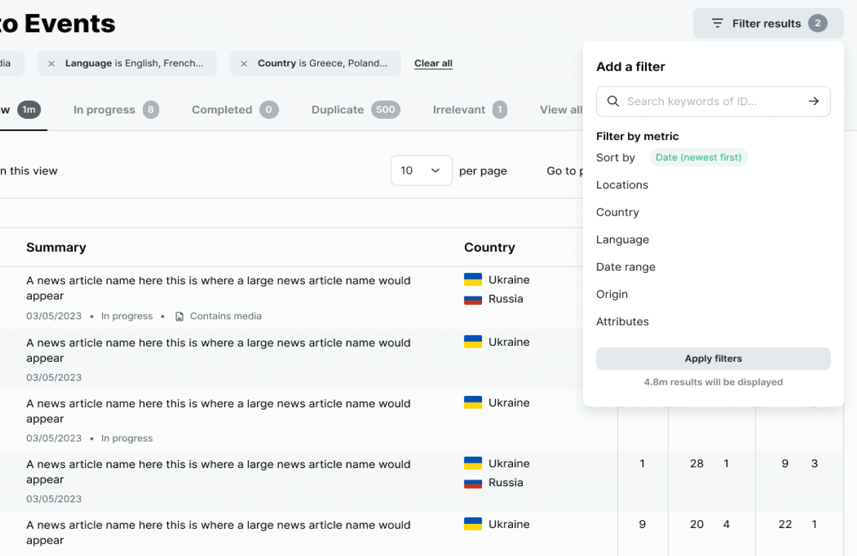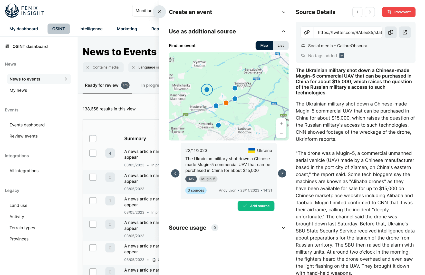 Working closely with the conflict events team responsible for processing OSINT data. Overseeing a reduction in time to publication for world conflict events contained in the system. User interviews, process analysis, inter-department workshops and analytics have driven the product outcome the business wanted, while ensuring that customers also benefit from the in house improvements.